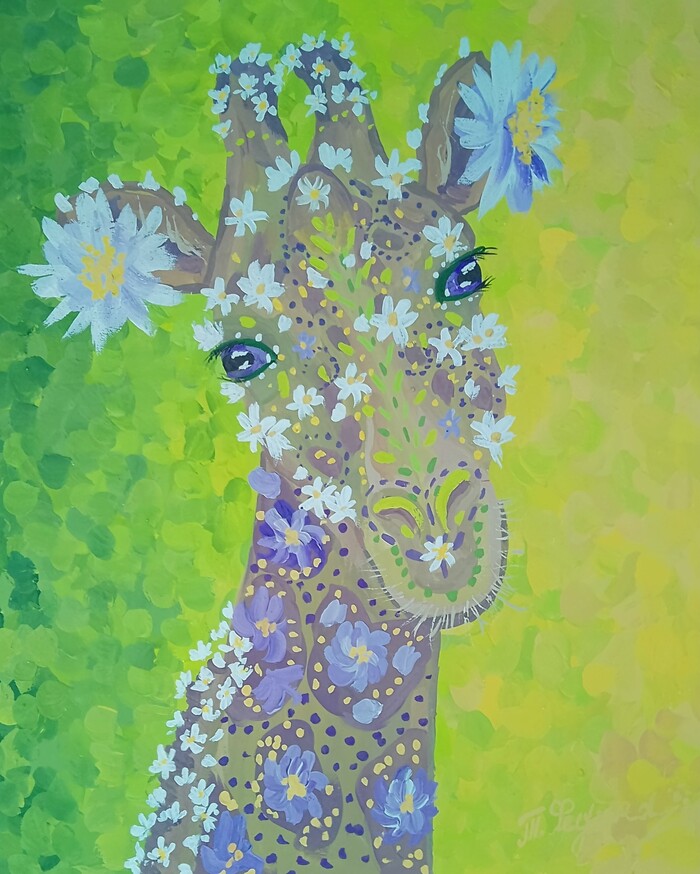 ИИ художник: Ворогушин Алексей Геннадьевич. Жираф с абстрактными надписями в стиле граффити. Нейрохудожник. Современное искусство. Изображение создано при помощи нейронных сетей. Основа до обработки сгенерирована в ideogram. Все права на изображение имеются. Подробности и доказательства по ссылке:
