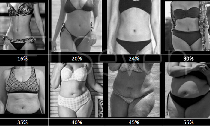 Вместо Х подставьте процент жира, с которым себя сравниваете. Дублирую таблицу из начала поста: