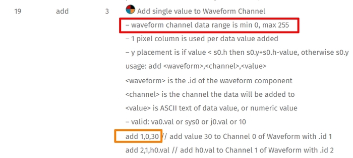 Ограничение диапазона выводимой информации от 0 до 255. И одно значение это 1 столбец пикселей на дисплее. Соответственно, чем больше у вас дисплей, тем больше информации вы сможете вывести на график.
