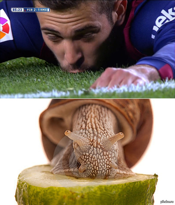 Инцидент произошел в матче 1/8 финала Лиги чемпионов между «Арсеналом» и «Барселоной». В ходе единоборства Жиру отмахнулся от соперника и попал ему пальцами в плечо. Один из лучших актеров «Барселоны» схватился за лицо и упал, как после удара Майка Тайсона. После этого испанец наехал на Жиру, который вообще не понял, почему Альба упал. Оба футболиста остались без карточек.