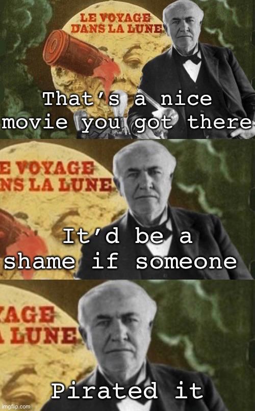 Формально, прокатывать пленку Мельеса Эдисон не мог — поэтому он и скопировал ее.