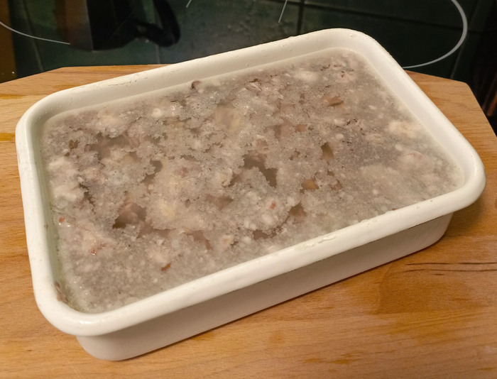 Я знаю, что большинству более привычно название «холодец», но тут уж извините — как я привык с детства слышать «студень», так и буду писать и говорить. В конце концов, студень (от слова «студёный») всё же застывает (от слова «стылый»), а не «холодеет».