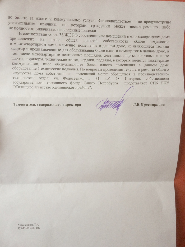 Во время ремонта: мне смс приходили от ЖСК что и на какой счёт оплатить. Незаконно, но да пофиг. Как заехала, мне пришло письмо «вы теперь жилец дома, отсканируйте квитанцию, которая к вам придёт в ближайший месяц, пишите новый месяц и оплачивайте!». В квитанции просто сумма. При этом вся коммуналке, включая капитальный ремонт, мусоропровод, не говорю уж о газе свете и воде - отдельно оплачивается. Спросила у Фрекен Бок по телефону, а за что платим? Ответ был - радиоточка и «охрана двора от наркоманов всяких».