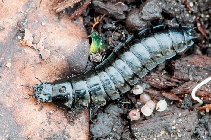 Впрочем, высокопоставленными особами жужелицы не рождаются. В апреле, прокуковав в яйцах 2 недели, молодые жучки появляются малюсенькими и слабенькими личинками. Целых полгода приходится им во всяком мусоре прятаться, да улитками побираться, пока не окуклятся.
