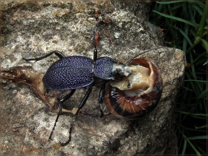 Только тем жужелицы и занимаются, что владения свои инспектируют и дань с улиток в виде самих улиток взимают. Кочуя с одних угодий на другие, жук преодолевает до 2-3 километров в день!