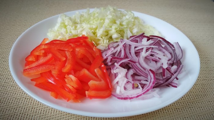 Свинину ополаскиваем в холодной воде и нарезаем пластиками среднего размера и отбиваем.