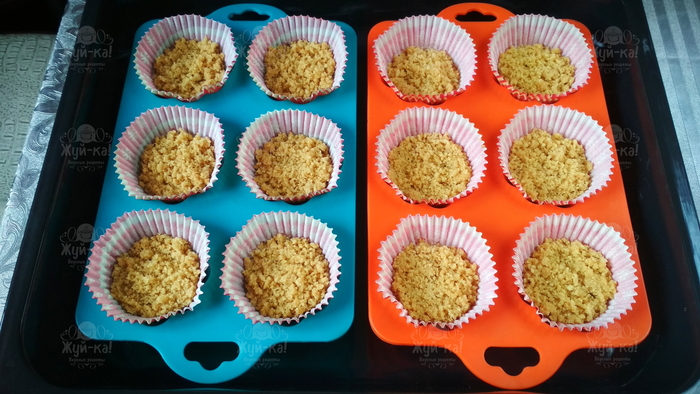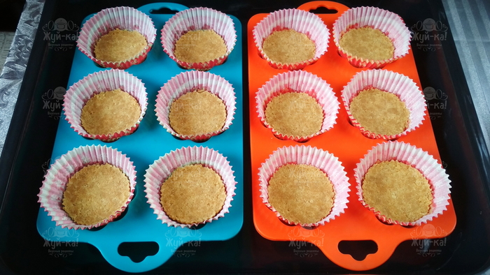 Отправляем бисквиты в духовку, нагретую до 180° С, на 6-8 минут. У нас бисквиты приготовились за 7 минут: