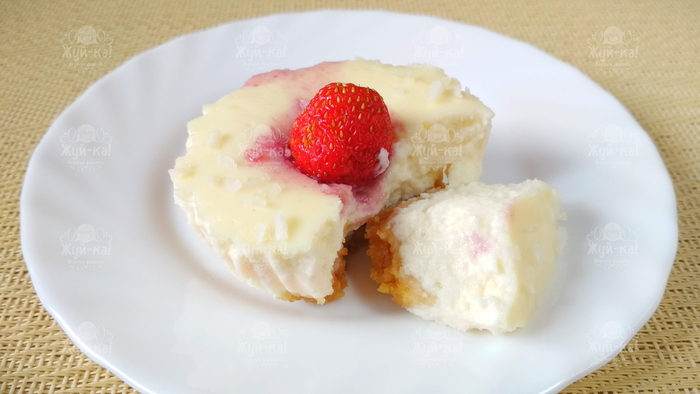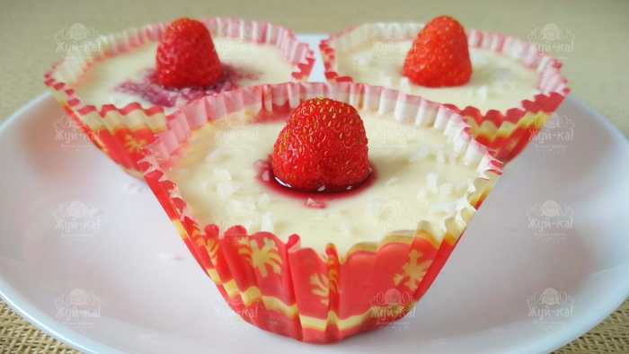 Украшаем клубникой и убираем пирожные в холодильник для стабилизации (примерно на 30 минут):