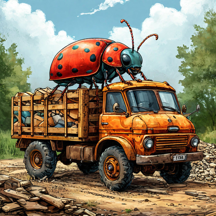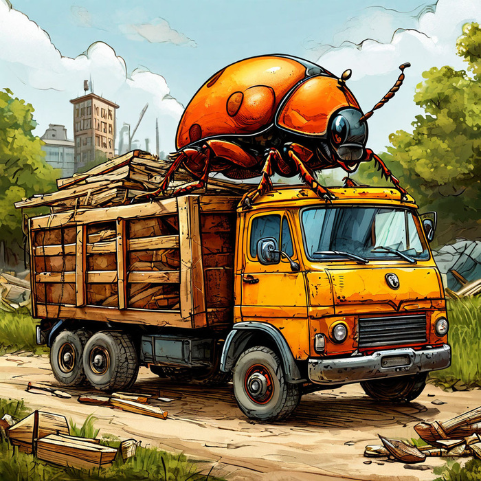 Но тут маляры его остановили, и сказали, что ему понадобится грузовичок, потому, как сам он такую тяжесть не донесёт один! — Вот тебе и новость, дорогие читатели, а ведь наш Жук ещё никогда не покупал строительные материалы на рынке, и он боялся, что купит, что-нибудь ни то. Но затем, все - таки отбросив все свои сомнения, Жук, сел в грузовичок, попрощался со своими малярами Пчёлами, и поехал вперёд по дороге на базар!