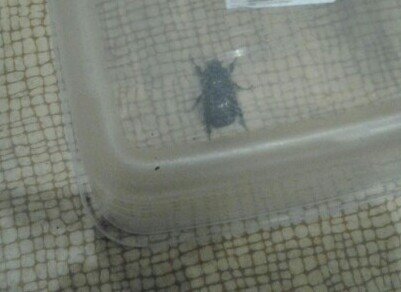 Недолго думая, схватила что первое попалось и накрыла "неизвестность". Контейнер оказался очень кстати - безопасно и прозрачно:) Только после этого смогла спокойно рассмотреть ЧТО же это! Визуально похож на жука-носорога... Гугл выдал, что это вроде как самка жука-носорога