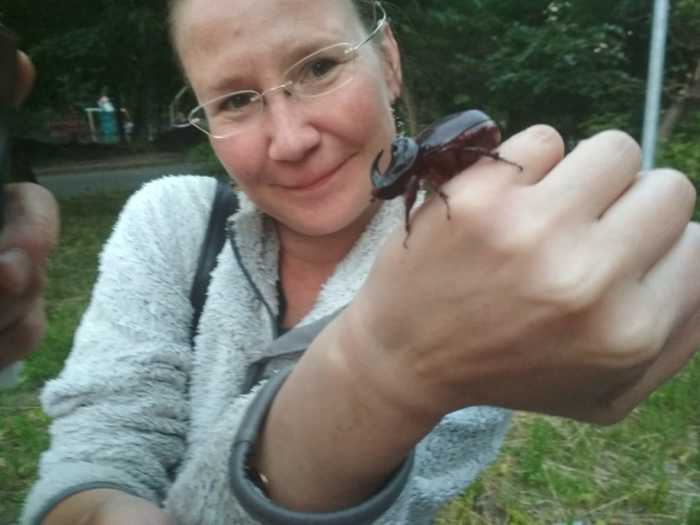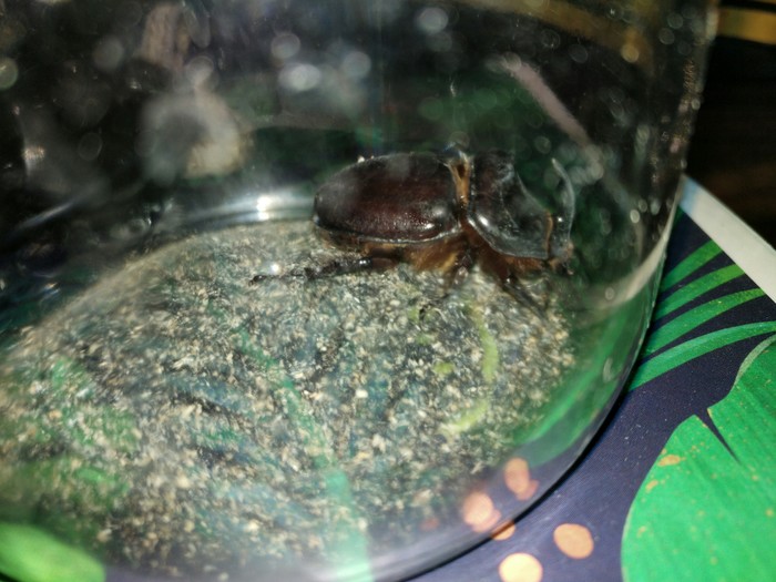 Ночью на спину мужа сел жук. На этот раз жук-носорог. Вот этот красавец.