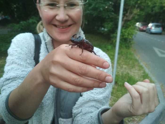 Собрав всю волю в кулак и даже не вскрикнув, что-бы меня не будить, жук был отправлен в дикую природу за окно.