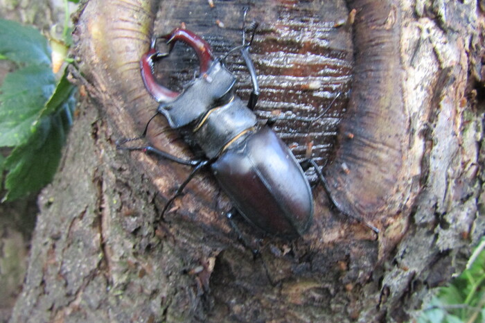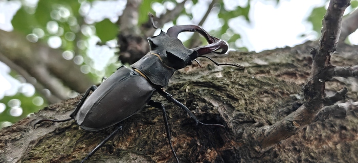 Уровень смотровой площадки был среди вершин дубов. Здесь, почти нас задевая, летали самцы жуков-оленей. Они удивили меня свой маневренностью в полете среди листьев и ветвей, несмотря на внушительные размеры, особенно с учетом раскрытых крыльев. Я даже вспомнил давно прочитанную историю о ловле бабочек морфо или других, обитающих только среди крон деревьев в Амазонской сельве. Для этого строили специальные платформы для ловцов бабочек до самых вершин, где можно было бабочек поймать.