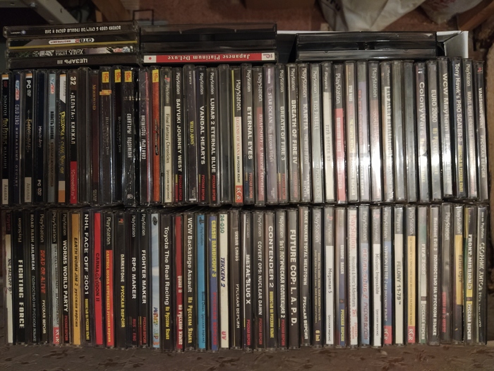 Целая коробка игр для "Playstation One", а также немного для ПК. Некоторые даже не распечатаны.