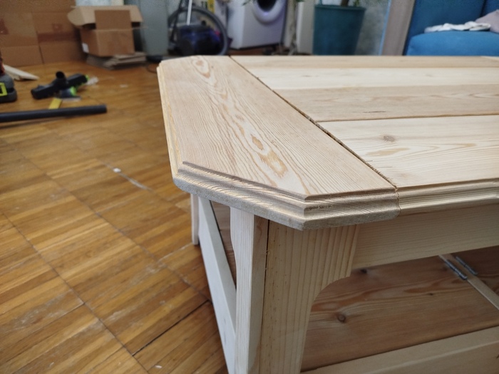 Дальше составление материалки и, собственно, поход по магазинам. Этот этап не очень интересный, так что его пропускаем. Но, как оказалось, дерево нынче неожиданно дорогое. Каркас - сосна, столешница и крышки подстолья - лиственница.