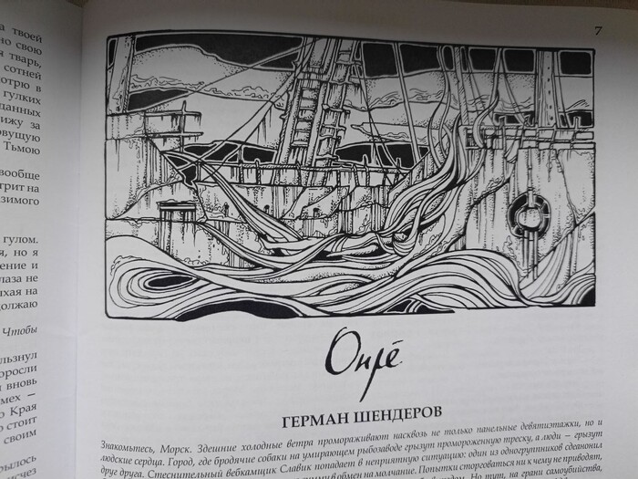 Так же в журнале присутствуют два комикса. И если первый – «За прекрасных дам»- вполне себе, такой анекдот в графическом стиле, на две страницы, то второй – «Фосфор»- слишком концептуальный для меня, надо рассмотреть в узорах Роршаха то ли зарождение демонов, то ли жизнь земноводных.