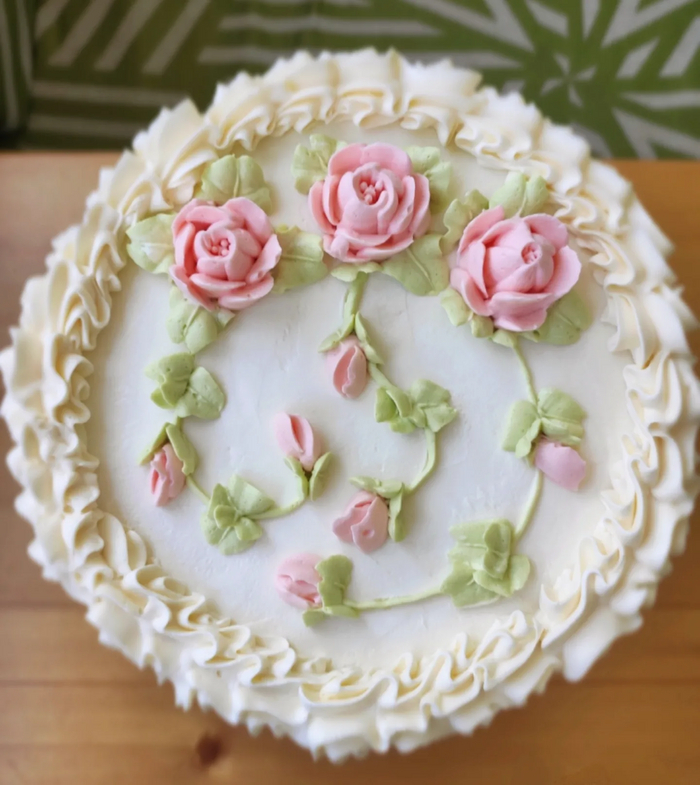 Ну и напоследок совершенно не креативный тортик, но тоже со смыслом. Масляные розочки - как воспоминание о детстве, но в более современном исполнении.