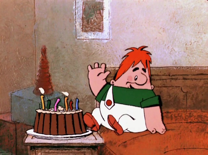 Как вариант - “восемь пирогов и одна свечка”. Помните, откуда это?
