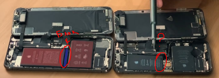 и просто их прилепили в телефон, при этом, они оторвали у батарейки очень важную часть - блок схемы вместе со шлейфом, который и вставляется в айфон.