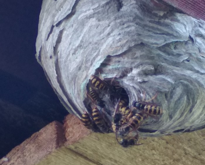 Поразили меня осы своим умом и сообразительность )) Осиное гнездо было у нас под вагонкой, на доме. Жили мы с ними мирно.
