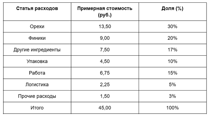 Наши батончики не относятся к бюджетному сегменту, потому что мы используем только качественные ингредиенты. Когда берёшь финики высшего качества из Саудовской Аравии и редкие орехи вроде макадамии, себестоимость неизбежно растёт.