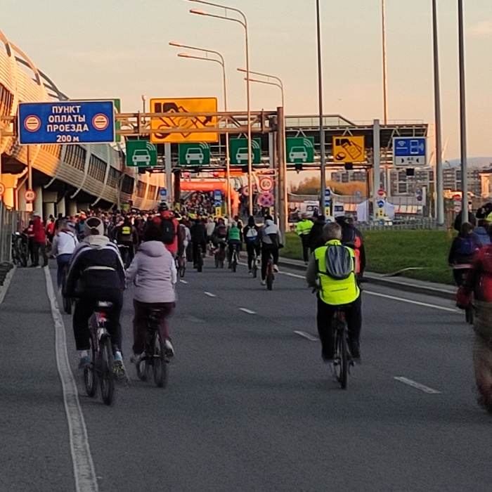 В субботу, 21 мая 2022 года в Питере прошёл велопарад по западному скоростному диаметру (ЗСД). Начало этого действа было назначено на 21 час.