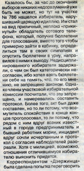 Сперва фрагмент статьи из городской газеты, посвященной выборам 19 декабря 1999 года: