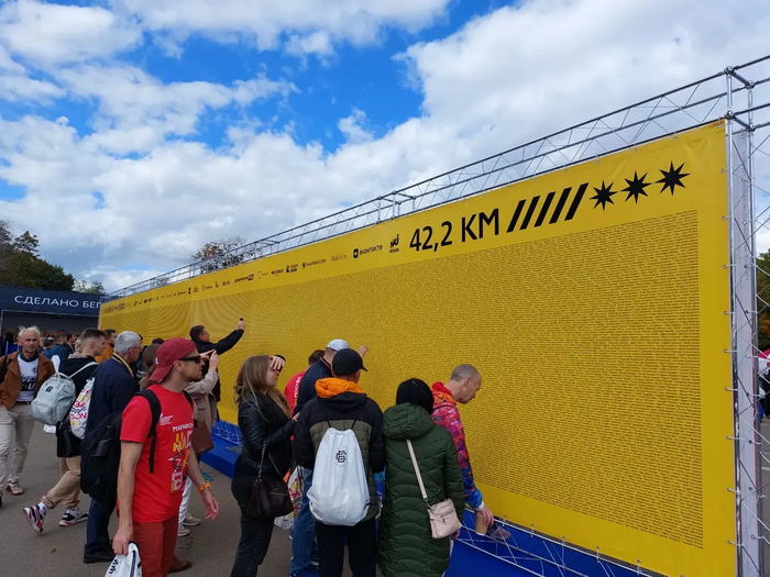 В стартовом пакете обнаружил футболку, баф, пару углеводно-белковых батончиков, флаер с промокодом U100 от Додо Пиццы и, внезапно, мерч от Единой России – рулетка на 97см (дальше не разматывается), попсокет, вонючка в авто и подобное. Без символики забега, с символикой ЕдРа. Даже примазаться нормально не смогли)