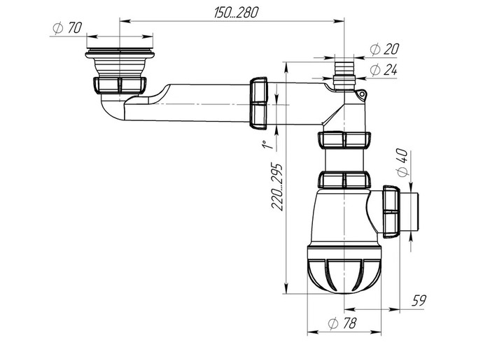 Эта простая штука позволяет дистанцировать сифон, удобно расположив его у стены. Схема сборки очень проста. Монтируем отвод вместо сифона, на него вешаем сифон и дальше действуем по инструкции из начала поста.