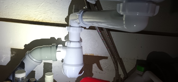 Тю-тю-тю-тю-тю-тю тюртлес... Тю, а я смотрю у вас под раковиной гофра! Почему? Была в комплекте с сифоном? И поэтому вы решили установить этот провисающий жиросборник?