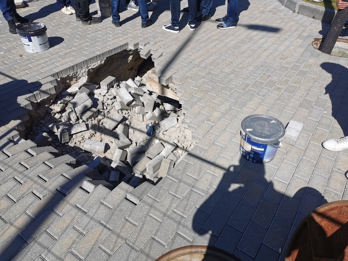 Обратились к нам с нестандартной проблемой - на парковке у жилого дома произошел серьезный такой провал замощения.