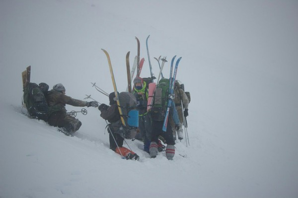 Аварийной команде оставили пилу, топор, часть продуктов и термосов и начали спускаться.