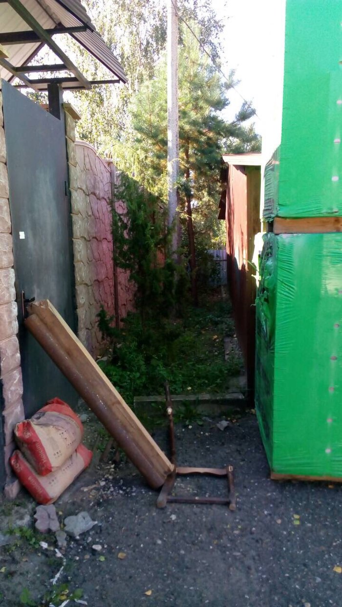 На видео выше конфликт, который произошел 14-го сентября 2017 года. Чтобы жильцы не вые***вались, им тупо завалили двери мешками цементом с досками. Кстати, посмотрите как близко лежат поддоны с кирпичами к заборам собственников.