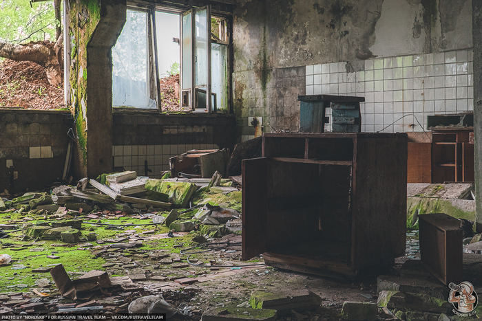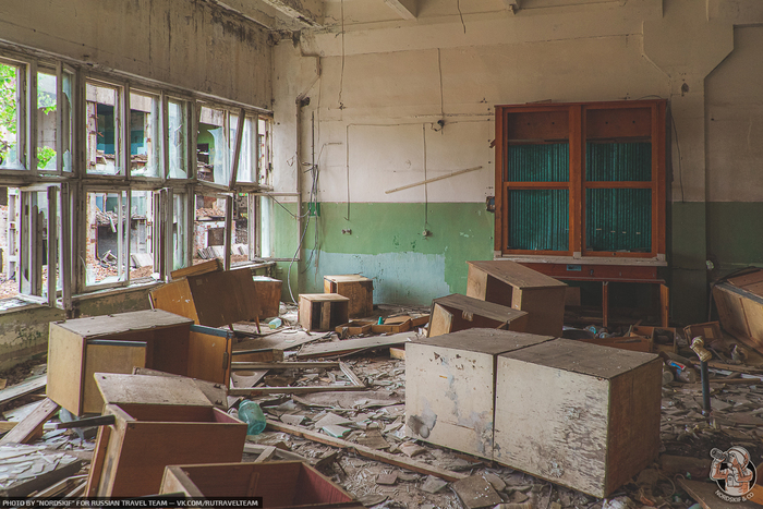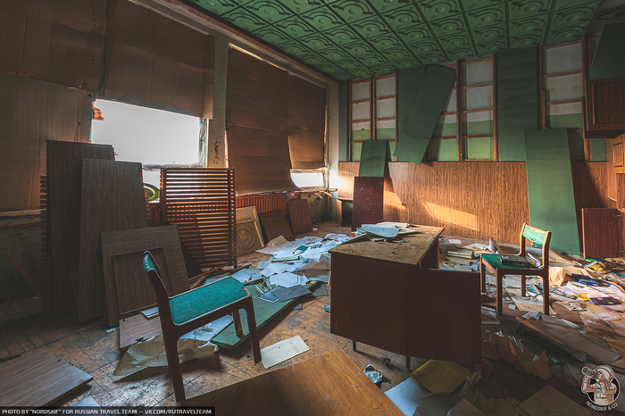 Начать осмотр предлагаю с заброшенного административного корпуса завода, где когда-то заседало руководство завода. Здесь, среди разрушенных аутентичных кабинетов позднего СССР разбросано большое количество различной документации и планов. Долгое время это здание стояло закрытым, что и позволило ему относительно неплохо сохраниться.
