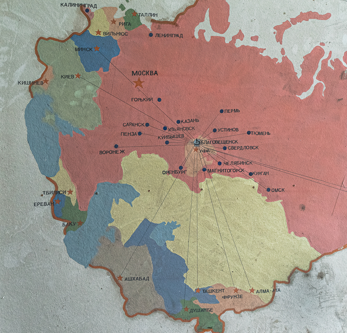 Отдельного внимания заслуживает карта сбыта готовой продукции в одном из кабинетов, как вы можете видеть, она расходилась по территории всего Советского Союза.