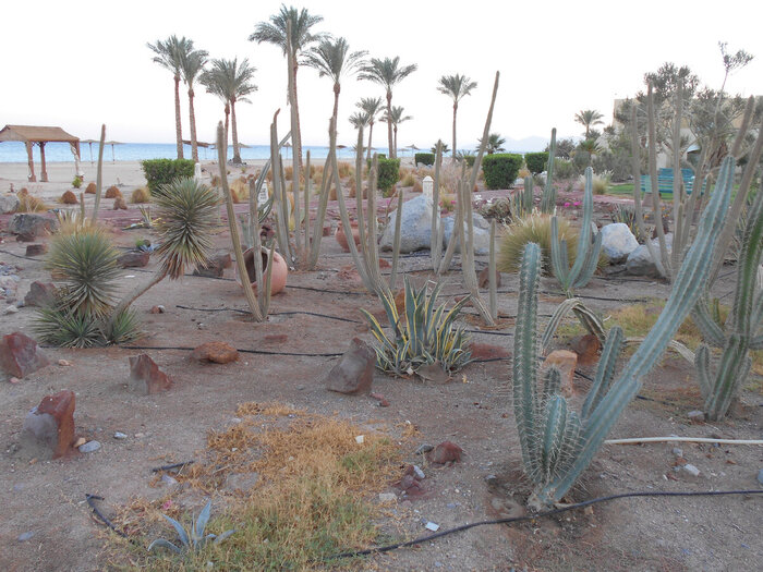 Кактусы всем видом просили пить. Земля была усыпана финиками, листьями и под всем этим был песок, вперемежку с землёй и проводами со шлангами.