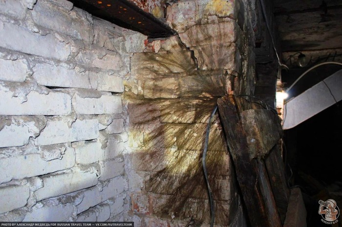На некоторых фото вы можете увидеть рукав от насоса и протянутое временное освещение. В отличии от бункера Берии «водоприток» здесь значительно меньше и команде реставраторов удалось откачать воду с помощью насосов. Сейчас вода остаётся лишь стволе с лифтом.