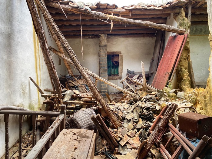 Естественно, в заброшенном деревенском доме не может быть целой крыши. В некоторых местах от неё остались только балки, упавшие на пол. Зато я не могу не заметить добротнейшие оконные рамы. Даже спустя десятилетия они практически не разрушились!