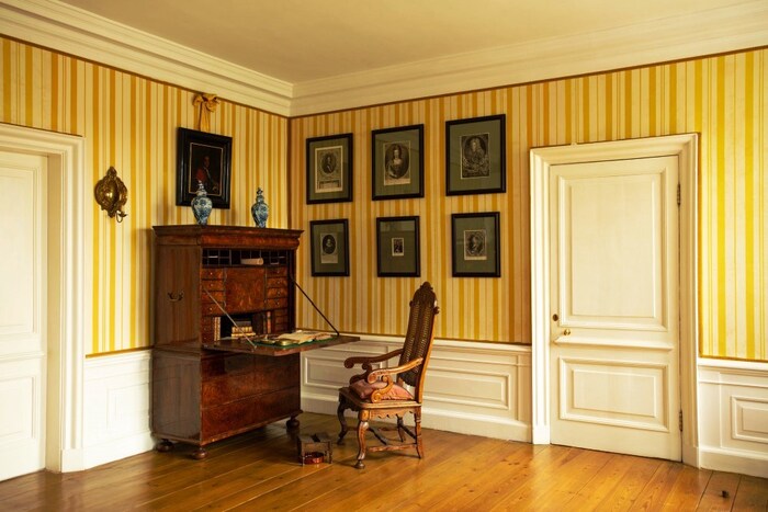 Здесь экспонируются, в частности, праздничный костюм и шёлковый халат Петра I, ширма, расписанная в китайском стиле («шинуазри»), бронзовый барельеф первого российского императора, выполненный по модели скульптора Бартоломео Карло Растрелли, слепок кисти руки и парадный портрет царя в молодости работы неизвестного русского художника, а также другие раритеты.