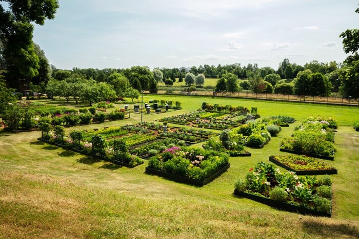 Возле дома разбили сад с оранжереями и фонтанами, огород, где выращивали лекарственные и медоносные растения (пасеку тоже организовали). Якобы именно здесь впервые в России произрос привезённый Петром I из Голландии картофель.