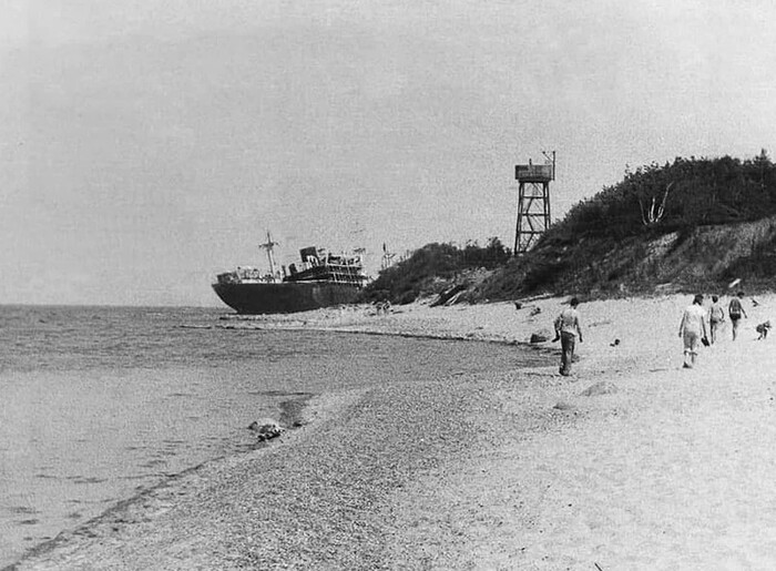 Заинтригованное необычным зрелищем, сонное население Заостровья и Пионерска, деливших тогда еще Гвардейский мыс, потянулось к берегу, чтобы поближе рассмотреть корабль, ну и оказать помощь морякам, если потребуется.