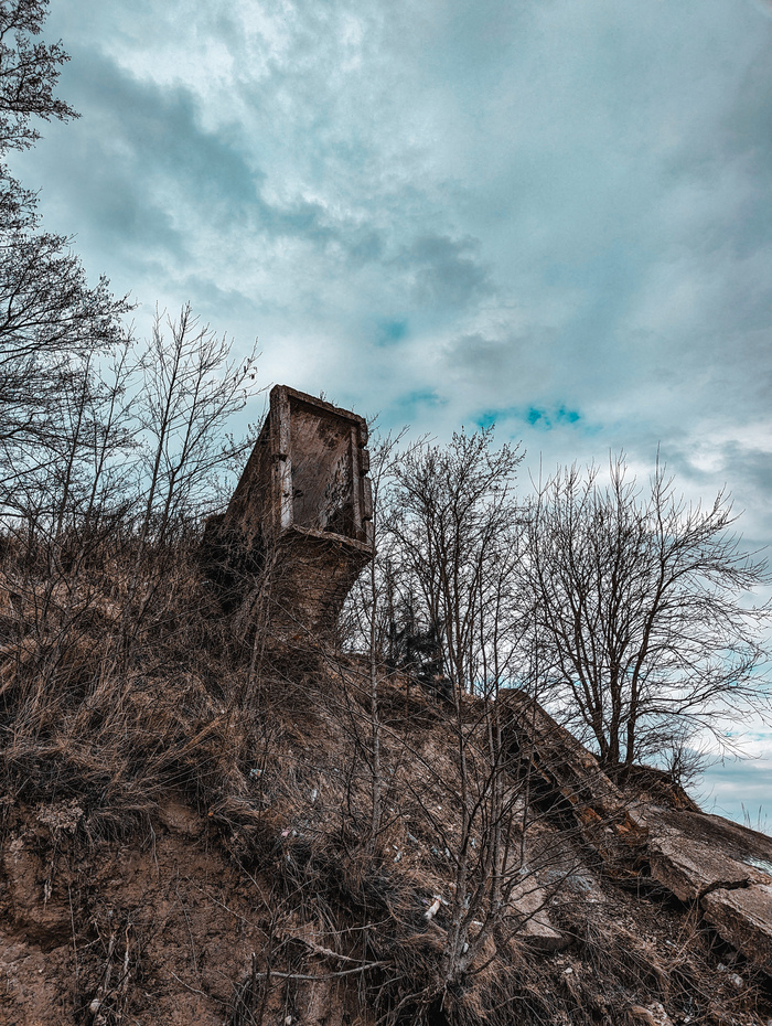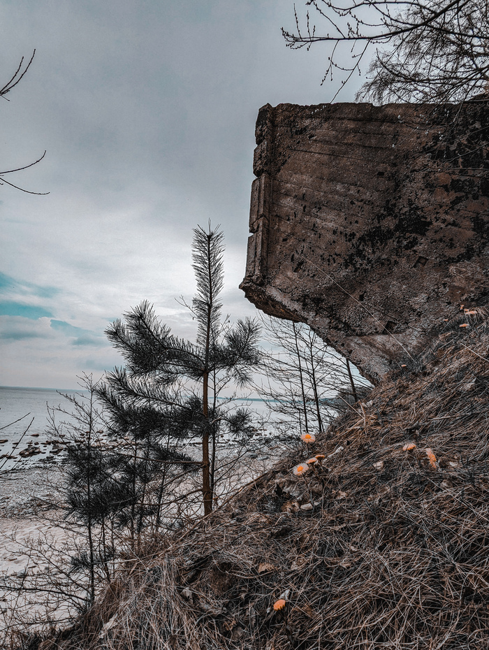 Я стою на пологом камне и смотрю вдаль, на одну из самых любимых заброшек в Калининградской области.