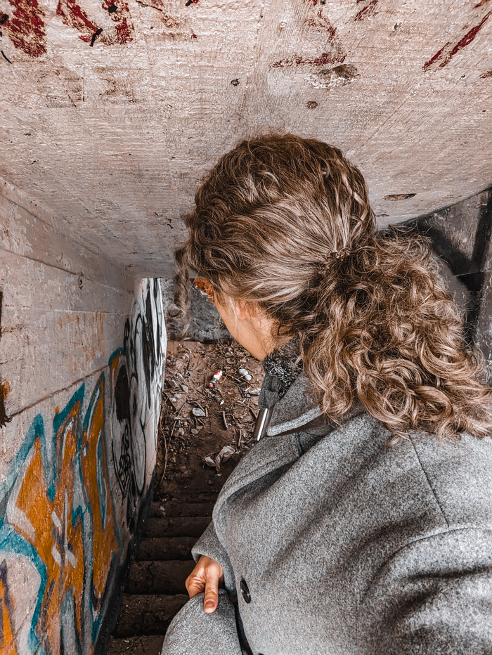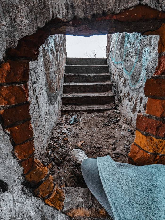 Тут я просто обязана пролезть в эту дыру, но т.к. одежда не особо подходящая под заброхи, приходится как принцессочка держать пальтишко, либо очень аккуратно лезть на высоту)