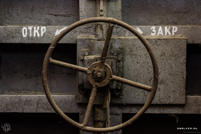 Здесь, как и подобается, снова встречаем гермо дверь, только теперь вместо рычагов штурвалы. Можете кстати заценить толщину подобных дверей.