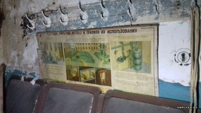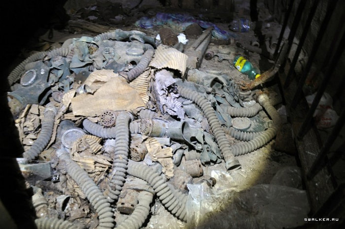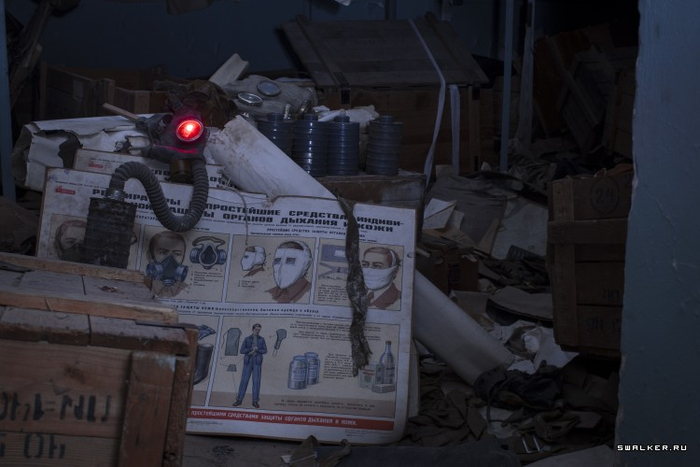 Ну и конечно, куда же без средств индивидуальной защиты. Увы, тут остались лишь старенькие гражданские противогазы ГП-4, ну или слоник, как многие их называют. Наверняка набор СИЗ был намного больше и не ограничивался лишь противогазами.