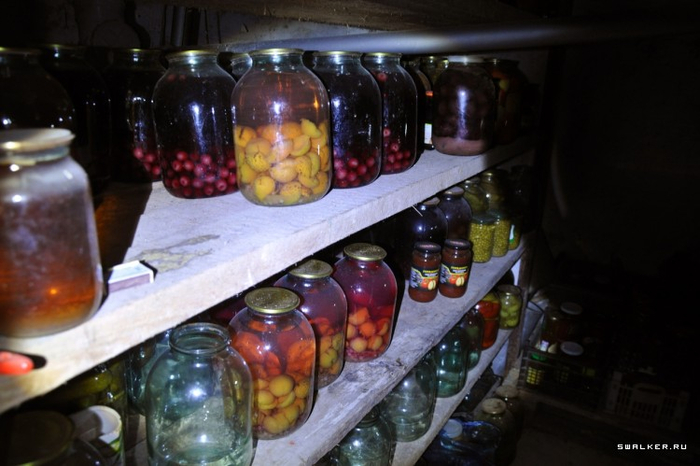 Пройдя заброшенную часть, внезапно выходим в ухоженные помещения. Чуть дальше - стеллажи с закрутками. Отсюда точно надо уходить, так как встречи с жильцами порой оборачиваются такими приключениями, что лучше избегать их. Бывало, что нас обнаруживали жильцы и закрывали в убежище, дожидаясь полицию, затем разборки и обьяснения на весь день и прочие проблемы, а они нам не нужны.