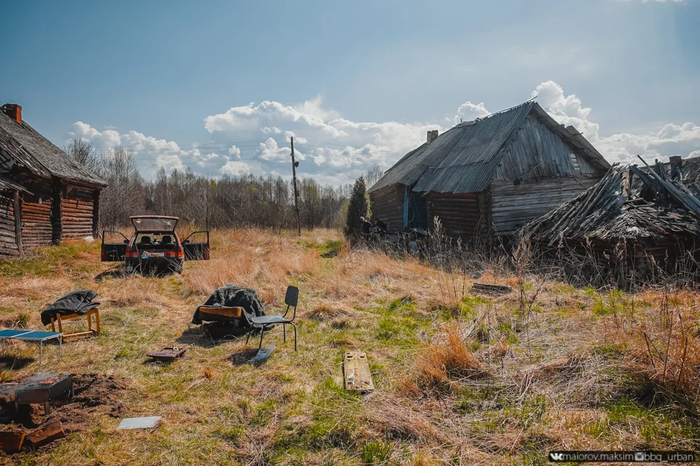 В прошлый раз я рассказывал вам о заброшенной деревне, в которой я нашел домик в отличном состоянии. Если вкратце, то я посетил деревню, в которой давно нет людей, нашел в ней дом в отличном состоянии и принял решение приехать сюда на пару дней и пожить. С прошлого посещения прошло несколько дней. Я вернулся в деревню с друзьями, и первым делом мы начали ремонтировать дорогу, ведь проехать сюда может только внедорожник, а моя старенькая девятка, скорее всего, не оценит форсирование болот и грязи.