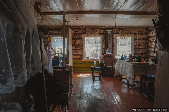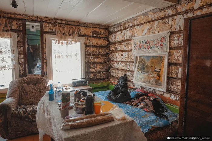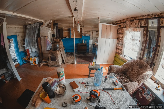 Все оказалось, это приехали соседи. В соседнем от нас доме несколько лет назад жила бабушка. Она была последним жителем этого села. Вот ее родственники решили проведать дом, забрать вещи и дрова. Молодой человек и его пожилая мама подошли к нам. Мы завели беседу. Сначала они очень удивились, что мы возимся в соседнем доме, ведь, как оказалось, хозяев этого дома уже давно нет в живых и дом по сути ничей. Лишь охотники несколько лет назад в сезон жили в нем. Именно они тут и выложили новую печь. Но вот уже несколько лет и охотники не приезжают в этот дом, поэтому он стоит снова пустой и никому не нужный. Соседи зашли в дом и удивились чистоте. С их слов, мы не дурно так убрались и привели в порядок дом. Обрадовались, что хоть кому-то нужна деревня. На том и распрощались.