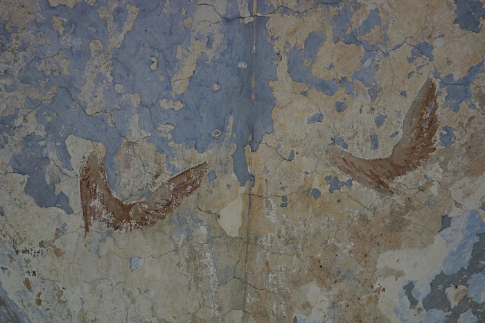 Государство ни дало ни одной копейки. Господь все видит! Епархии и подавно нет дела. Все что вы здесь видите внутри храма – все сделано руками мужа. Нашими с ним общими усилиями мы заделали здесь окна рекламными баннерами, чтобы не продувало, и влага не попадала. Вход в обвалившийся престол сами заделали, как и в трапезную. Гена даже смог сохранить половые плиты 18 века, которые вы видите под ногами возле левого клироса. Скамейки сам сделал. Когда Гена стал счищать побелку на стене, то обнаружил образ «Святой великомученицы Параскевы.
