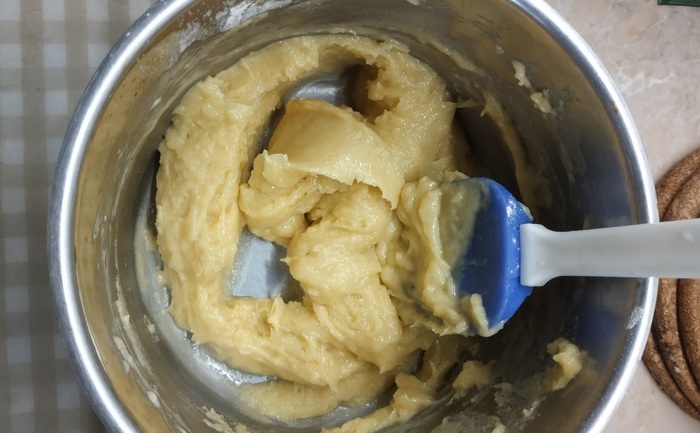 Два слова про тесто. Готовить по Ирининым указаниям легко и приятно, но есть нюансы. Так, например, она предлагает отсаживать заготовки для эклеров из мешка с отверстием диаметром 2 см. Такой широкой насадки у меня нет, но я вышла из положения - рассчитала длину окружности и обрезала на нужной высоте кончик одноразвого корнета. Но, блин, оказалось, что отсаживать тесто без насадки ппц как неудобно! Концы заготовок вышли толще, чем сами пирожные и во твремя выпечки их растарабанило.